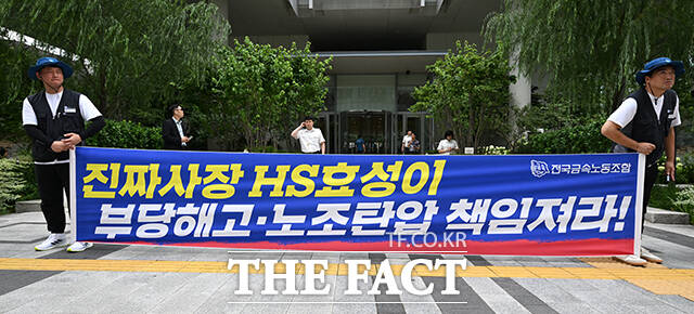 이날 노조는 "1년 넘게 노동조합을 탄압하는 신성자동차 문제 해결을 촉구하고자 해고자들이 조현상 HS효성그룹 부회장을 직접 만나러 특검사무실 앞으로 왔다"고 설명했다.