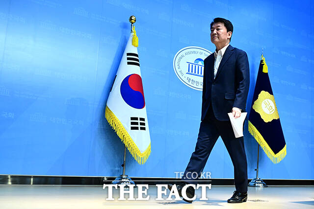 [더팩트ㅣ국회=남윤호 기자] 당대표 출마를 선언한 안철수 국민의힘 의원이 21일 오전 서울 여의도 국회 소통관에서 기자회견에 나서고 있다.