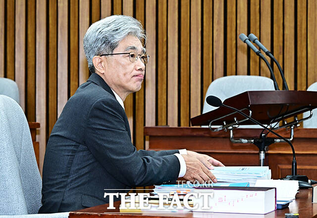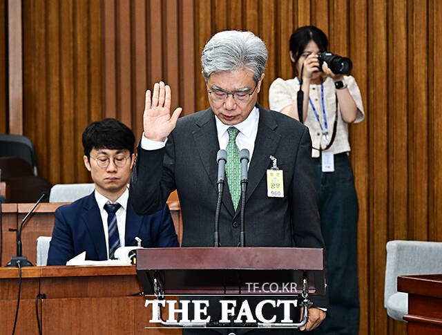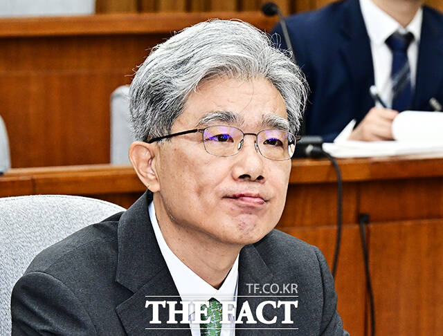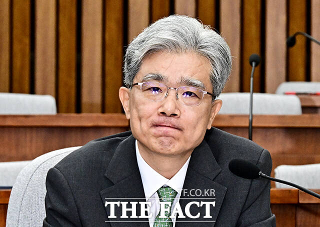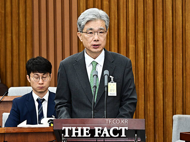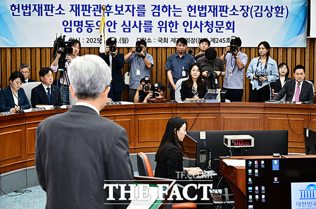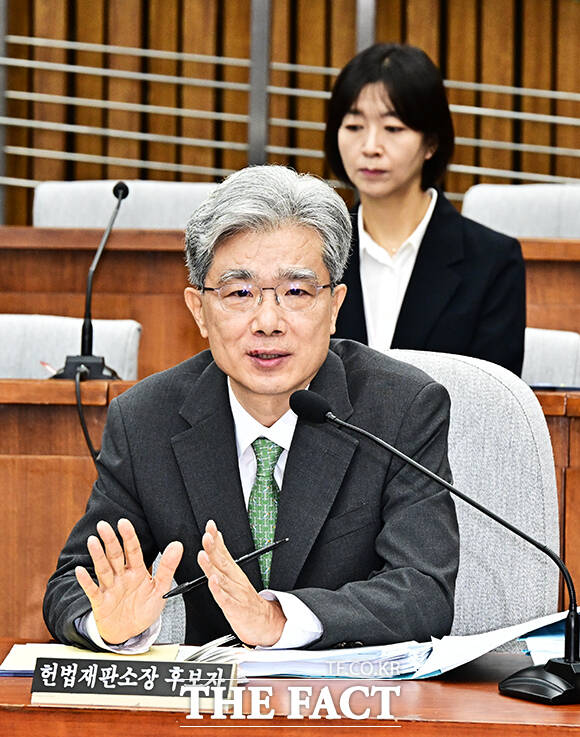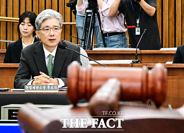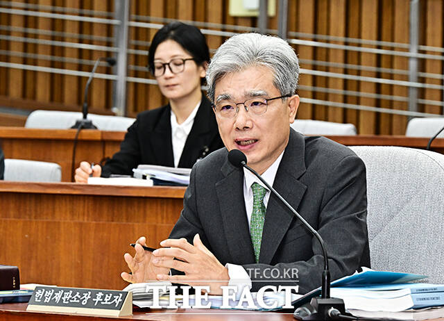 [더팩트ㅣ국회=배정한 기자] 김상환 헌법재판소 재판관 겸 헌법재판소장 후보자가 21일 오전 서울 여의도 국회에서 열린 인사청문회에 참석해 질의에 답변을 하고 있다.