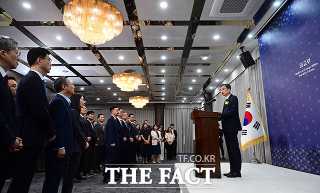 [더팩트ㅣ임영무 기자] 조현 신임 외교부 장관이 21일 오전 서울 종로구 외교부에서 열린 취임식에 참석해 취임사를 하고 있다.