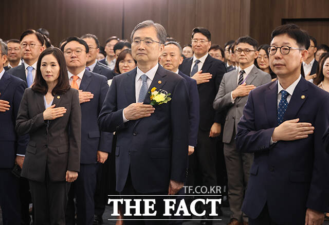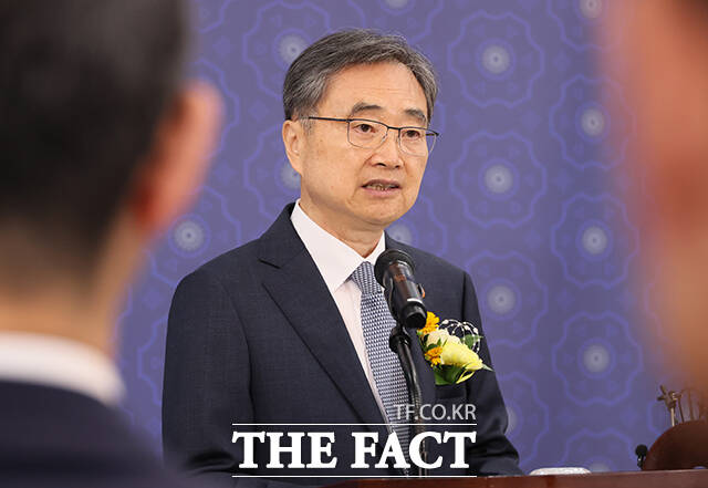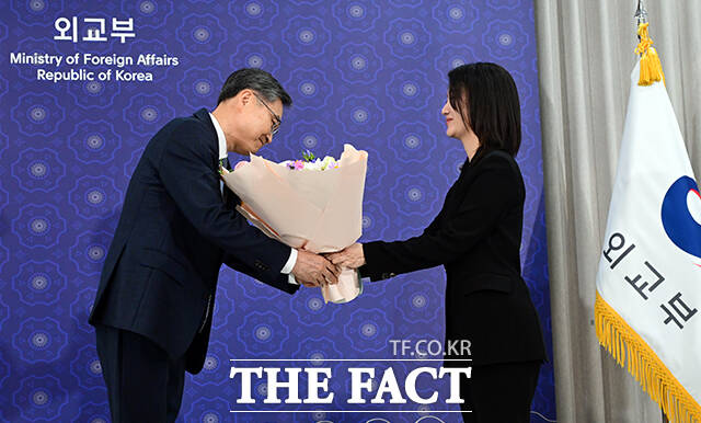 [더팩트ㅣ임영무 기자] 조현 신임 외교부 장관이 21일 오전 서울 종로구 외교부에서 열린 취임식에 참석해 취임사를 하고 있다.