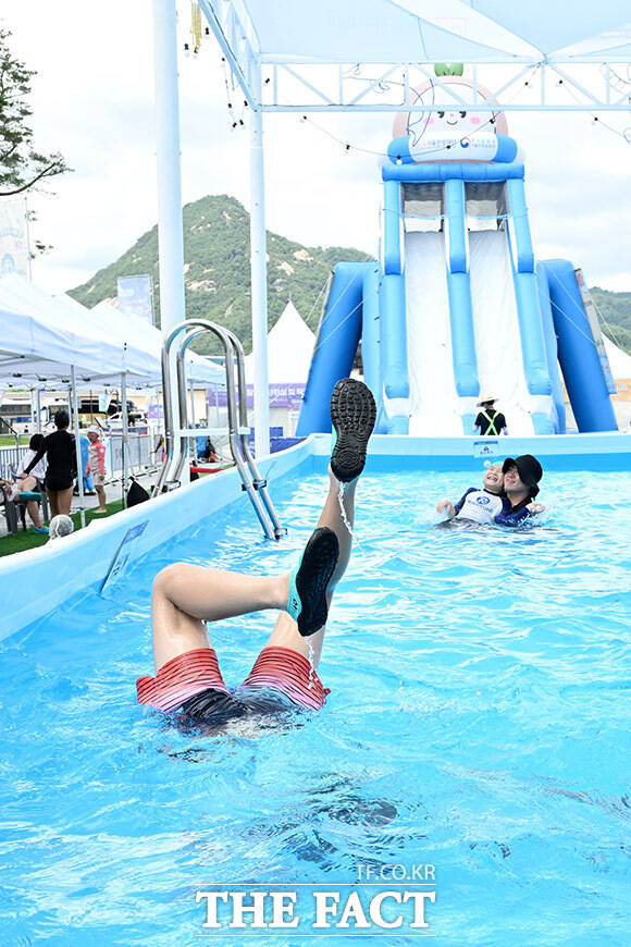 [더팩트ㅣ남용희 기자] 장마가 끝나고 전국 대부분 지역에 무더위가 지속되는 21일 오후 서울 종로구 광화문광장에서 열린 '2025 서울썸머비치' 물놀이터에서 어린이들이 물놀이를 즐기며 더위를 식히고 있다.