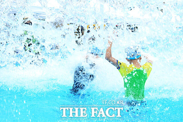 [더팩트ㅣ남용희 기자] 장마가 끝나고 전국 대부분 지역에 무더위가 지속되는 21일 오후 서울 종로구 광화문광장에서 열린 '2025 서울썸머비치' 물놀이터에서 어린이들이 물놀이를 즐기며 더위를 식히고 있다.
