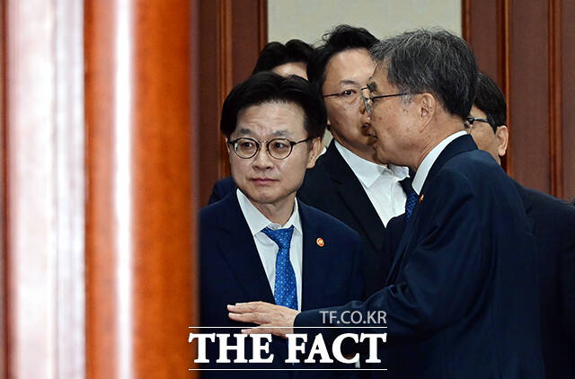 [더팩트ㅣ임영무 기자] 조현 외교부 장관(오른쪽)과 김정관 산업통상자원부 장관이 22일 오전 서울 종로구 정부서울청사에서 열린 대외경제장관회의를 마친 뒤 대화를 나누고 있다.darkroom@tf.co.kr사진영상기획부 photo@tf.co.kr