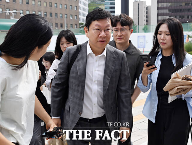 [더팩트ㅣ이새롬 기자] 윤재현 참손푸드 대표가 22일 오전 서울 종로구 광화문 KT광화문빌딩 웨스트에 마련된 김건희 여사 관련 의혹 수사 중인 민중기 특별검사팀 사무실로 출석하고 있다.