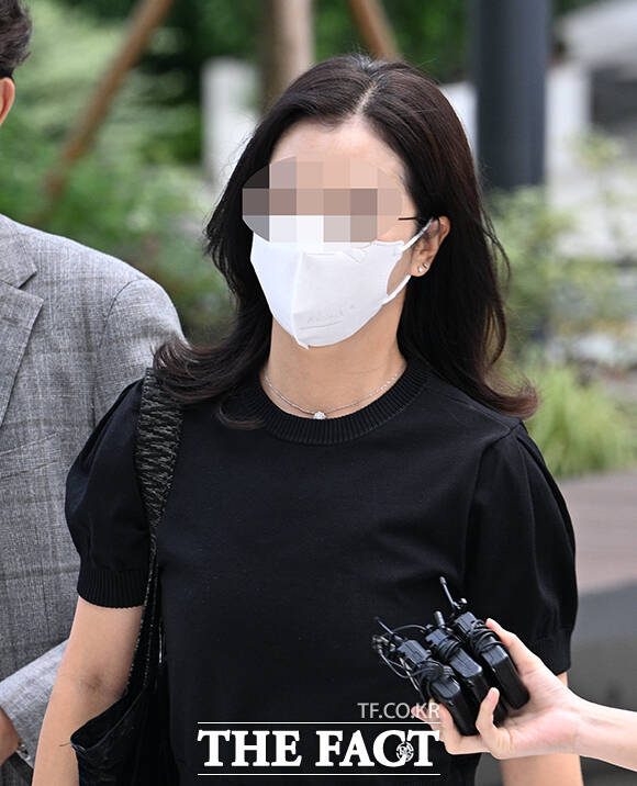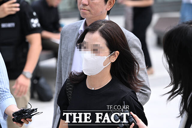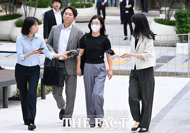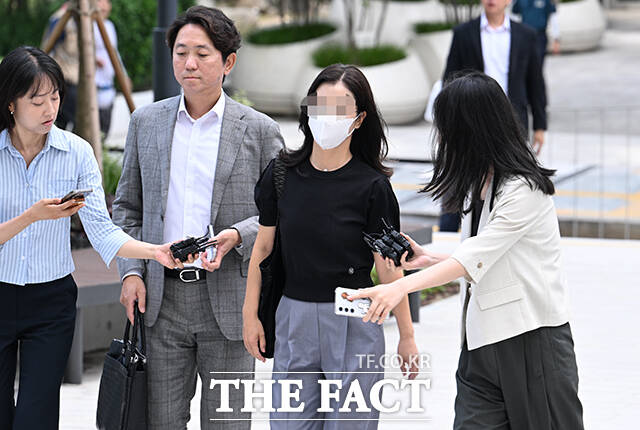 [더팩트ㅣ박헌우 기자] '집사 게이트' 의혹의 핵심 인물인 김예성 씨 배우자 정 모 씨가 23일 오전 서울 종로구 KT광화문빌딩 웨스트에 마련된 민중기 특검 사무실에 출석하고 있다.
