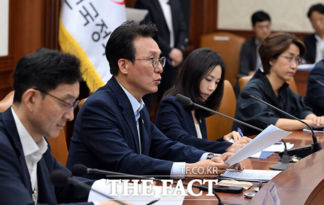[더팩트ㅣ임영무 기자] 김민석 국무총리(왼쪽 두 번째)가 23일 오전 서울 종로구 정부서울청사에서 열린 APEC 정상회의 종합점검회의에 참석해 모두발언을 하고 있다.darkroom@tf.co.kr사진영상기획부 photo@tf.co.kr