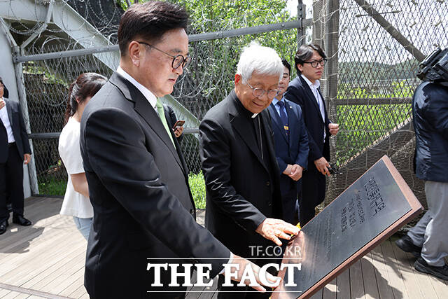 임진각에서 평화대담 나누는 우원식 국회의장과 유흥식 추기경 [TF사진관]