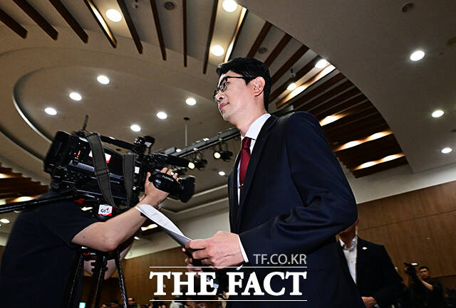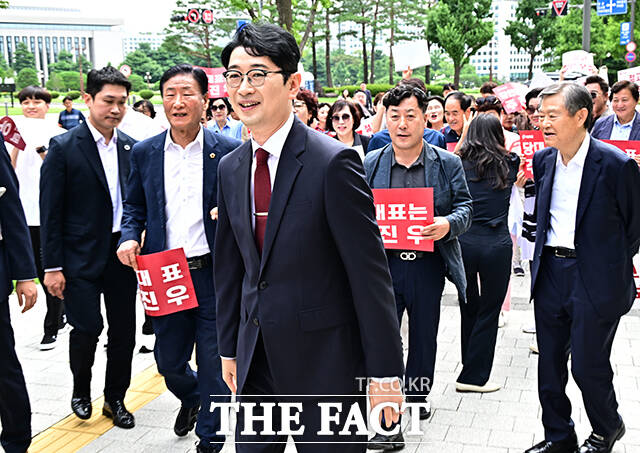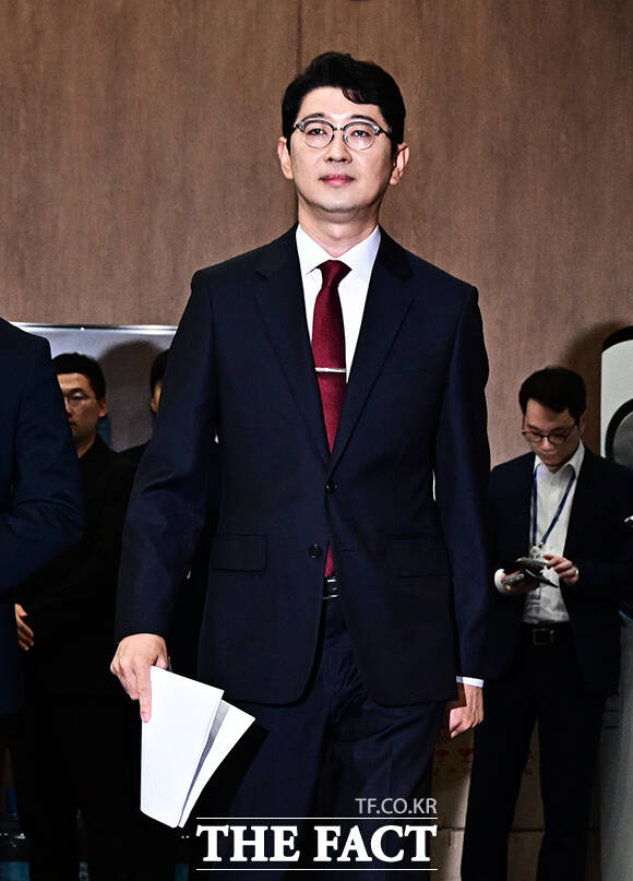 [더팩트ㅣ국회=배정한 기자] 주진우 국민의힘 의원이 24일 오전 서울 여의도 국회 소통관에서 당대표 출마선언 기자회견을 하기 위해 이동하고 있다.