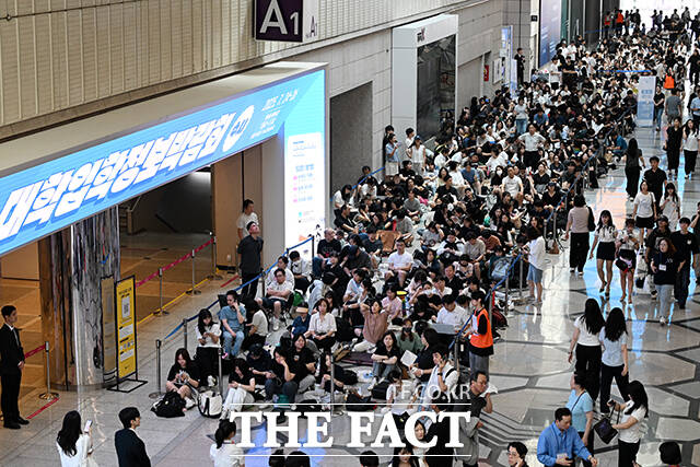 [더팩트ㅣ서예원 기자] 2026학년도 수시 대학입학정보박람회가 24일 오전 서울 강남구 코엑스에서 열린 가운데 수험생과 학부모들이 입장을 위해 대기하고 있다.