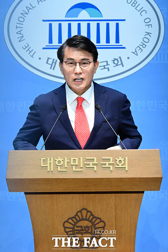 [더팩트ㅣ국회=남윤호 기자] 윤상현 국민의힘 의원이 24일 오전 서울 여의도 국회 소통관에서 기자회견을 열고 최근 논란이 된 '자유공화 리셋코리아' 토론회 등에 대해 대국민 사과하고 있다.