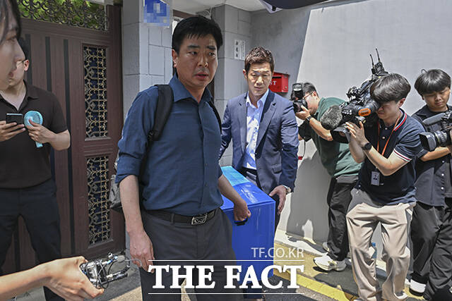 [더팩트ㅣ임영무 기자] 12.3 비상계엄 관련 내란·외란 혐의를 수사중인 내란 특검(특별검사 조은석)팀이 24일 오후 서울 종로구의 한덕수 전 국무총리의 자택에 대한 압수수색을 마친 뒤 압수품을 차량으로 옮기고 있다.darkroom@tf.co.kr사진영상기획부 photo@tf.co.kr