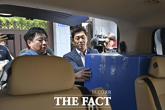 [더팩트ㅣ임영무 기자] 12.3 비상계엄 관련 내란·외란 혐의를 수사중인 내란 특검(특별검사 조은석)이 24일 오후 서울 종로구 한덕수 전 국무총리의 자택에 대한 압수수색을 마친 뒤 압수품을 차량에 싣고 있다. darkroom@tf.co.kr사진영상기획부 photo@tf.co.kr