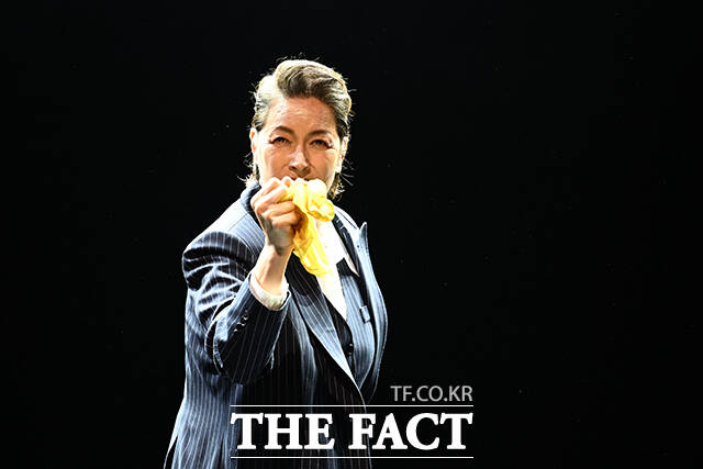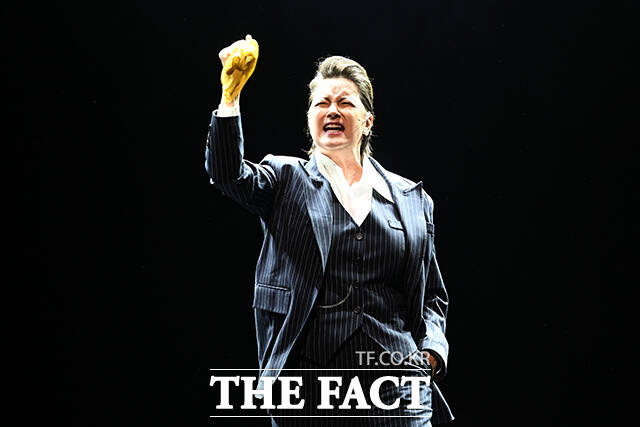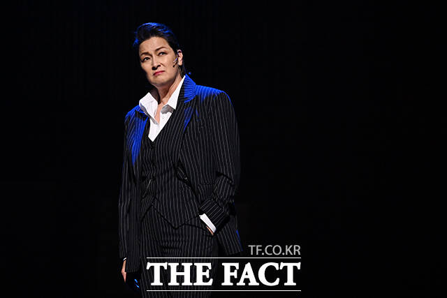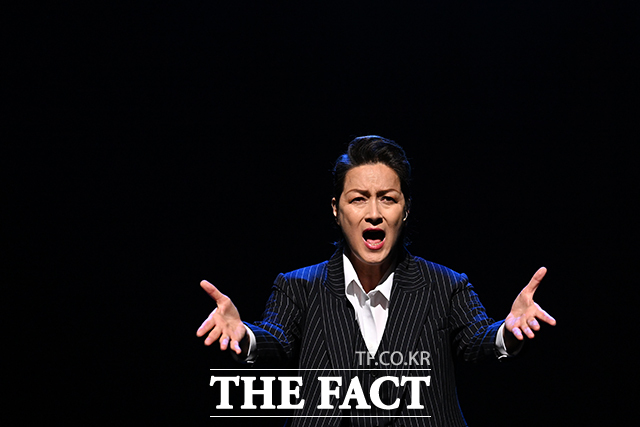 [더팩트ㅣ서예원 기자] 뮤지컬 배우 박칼린이 24일 오후 서울 송파구 롯데월드 샤롯데씨어터에서 열린 뮤지컬 '브로드웨이 42번가' 프레스콜에 참석해 하이라이트 장면을 시연하고 있다.