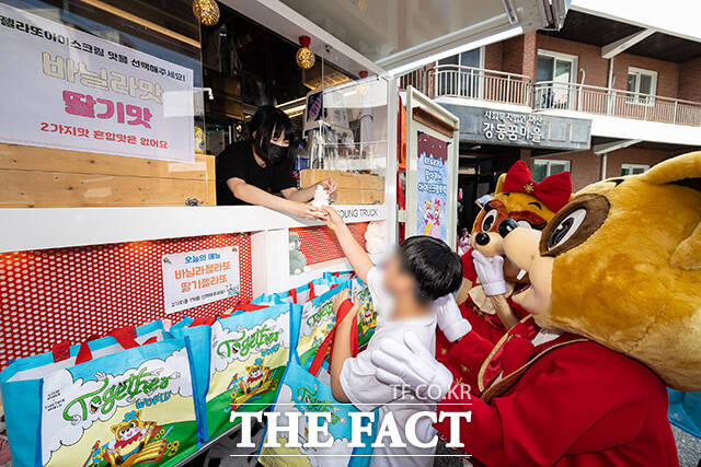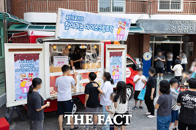 [더팩트ㅣ박헌우 기자] 롯데월드 (대표이사 권오상) 임직원으로 구성된 샤롯데 봉사단이 24일 여름방학을 맞이해 아동 청소년 보육시설 '강동꿈마을'에서 더위를 날려줄 사회공헌 활동 '아이스크림 트럭'을 진행했다.
