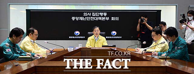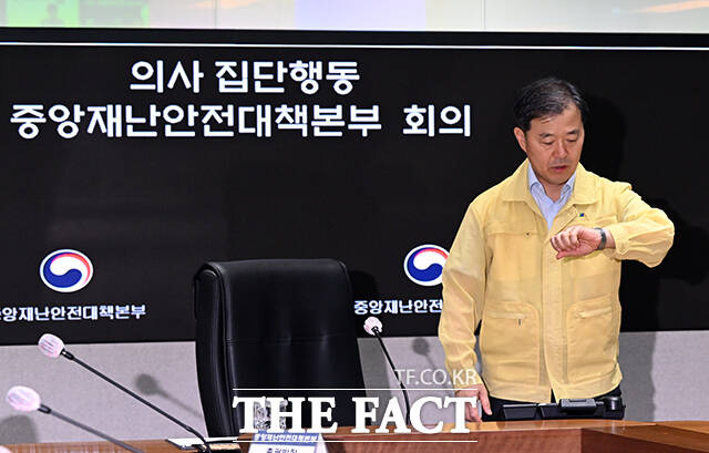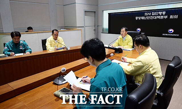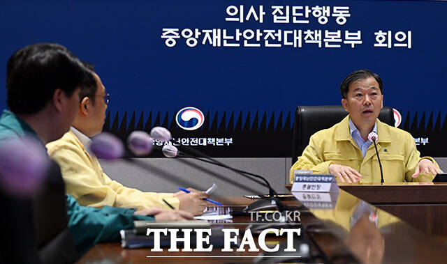 [더팩트ㅣ임영무 기자] 이형훈 중앙재난안전대책본부 제1총괄조정관(보건복지부 2차관)이 25일 오전 서울 종로구 정부서울청사 중앙재난안전상황실 서울상황센터에서 열린 의사 집단행동 중대본 회의에 참석해 모두발언을 하고 있다.