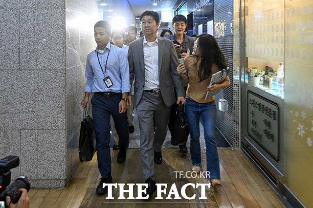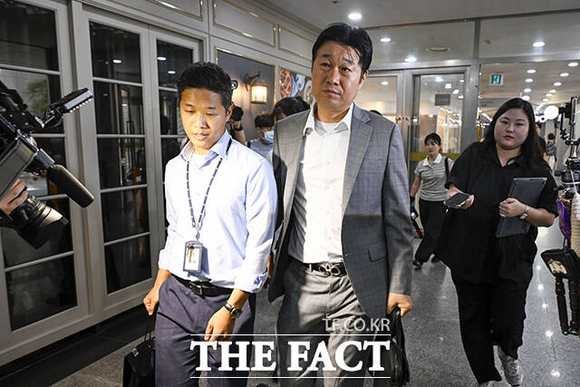 [더팩트ㅣ장윤석 기자] 김건희 여사의 의혹들을 수사하는 민중기 특별검사팀 관계자들이 25일 오후 서울 서초구 아크로비스타 내 코바나컨텐츠 사무실 압수수색을 마친 뒤 철수하고 있다.