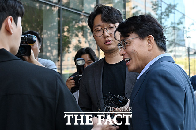 [더팩트ㅣ남용희 기자] 공천 개입 의혹을 받고 있는 윤상현 국민의힘 의원이 27일 오전 서울 종로구 KT 광화문 빌딩 웨스트에 마련된 김건희 특검(특별검사 민중기)에 출석하며 취재진의 질문에 답하고 있다.