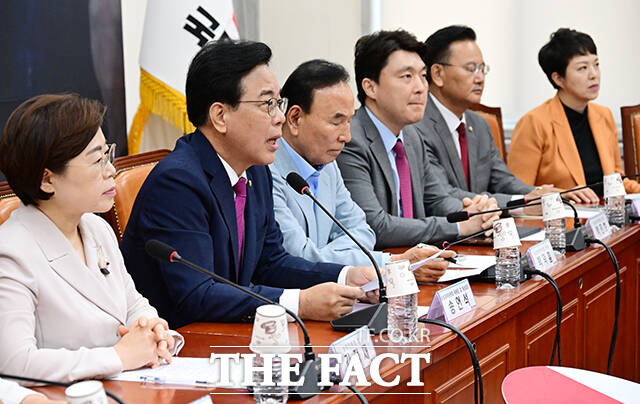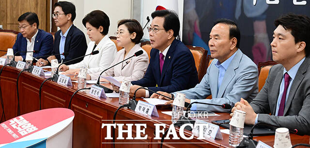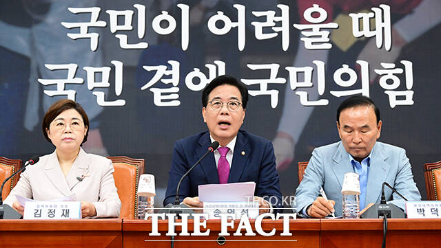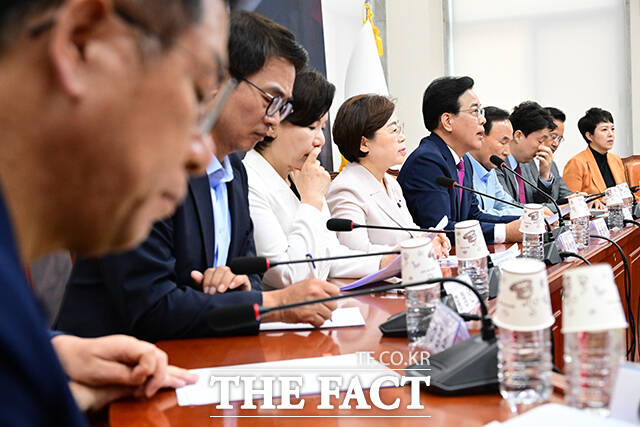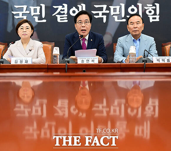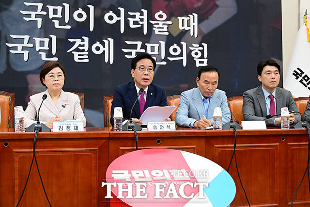 송언석 비상대책위원장은 이날 회의에서 "대한민국이 사느냐 죽느냐 기로에 서 있는 관세 협상은 지지부진하고, 이재명 정권은 기업하기 좋은 나라를 만들기는커녕 기업 때려잡기에만 골몰하고 있다"고 비판했다.