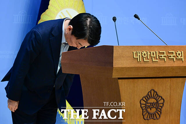 [더팩트ㅣ국회=남윤호 기자] 국민의힘 당권주자 안철수 의원이 28일 오전 서울 여의도 국회 소통관에서 기자회견을 열고 '당 혁신안 5대 과제'를 제시하고 있다.