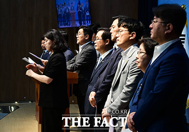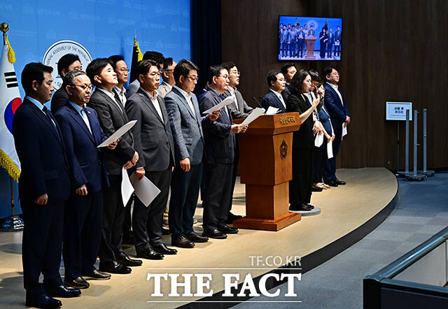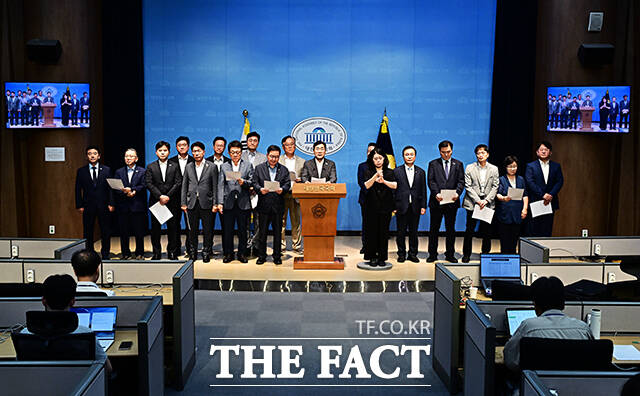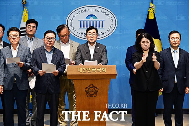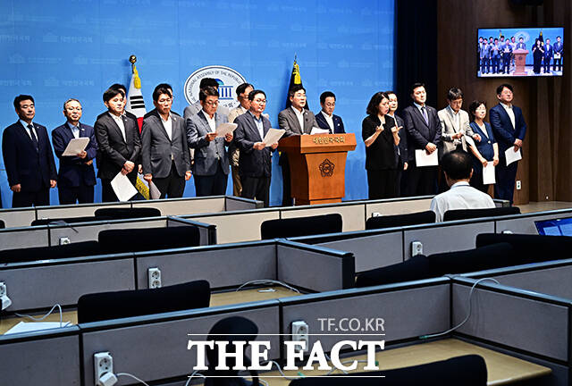 [더팩트ㅣ국회=배정한 기자] 박찬대 더불어민주당 당대표 후보가 29일 오전 서울 여의도 국회 소통관에서 열린 기자회견에 참석하고 있다.