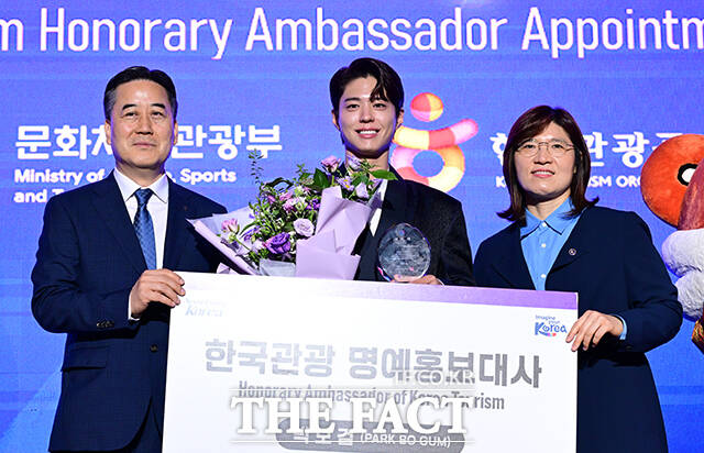 [더팩트ㅣ임영무 기자] 배우 박보검(가운데)이 29일 오전 서울 강남구 논현동 SJ쿤스트할레에서 열린 2025 한국관광 명예홍보대사 위촉식에 참석해 장미란 문화체육관광부 제2차관, 서영충 한국관광공사 사장과 함께 포토타임을 갖고 있다.darkroom@tf.co.kr사진영상기획부 photo@tf.co.kr