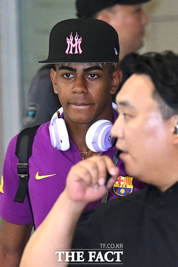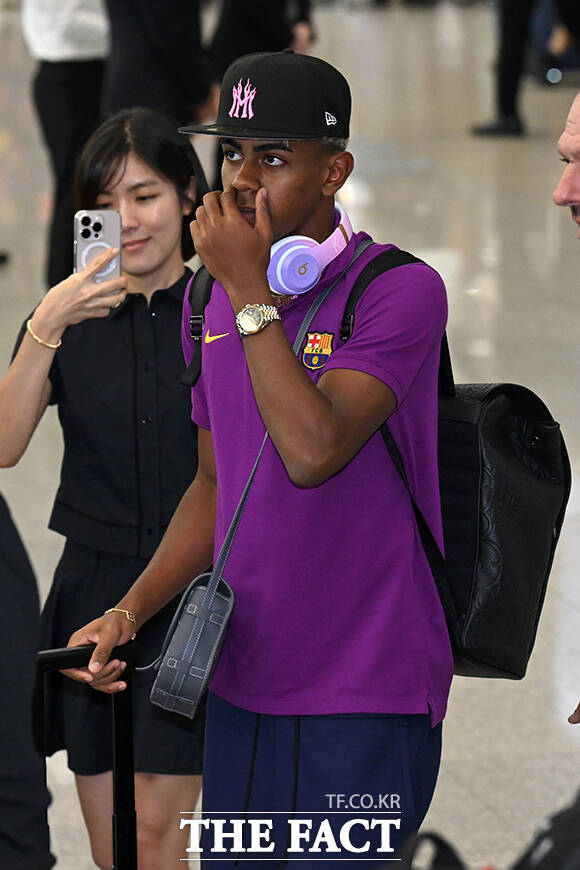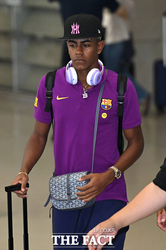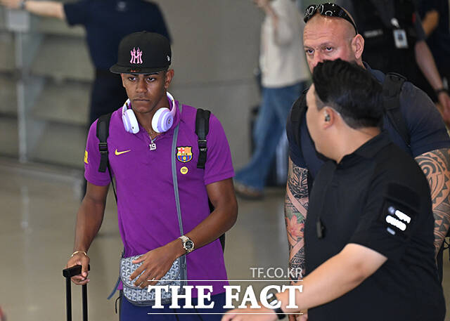 FC 바르셀로나의 라민 야말이 29일 오후 인천국제공항을통해 입국하고 있다. /인천국제공항=장윤석 기자