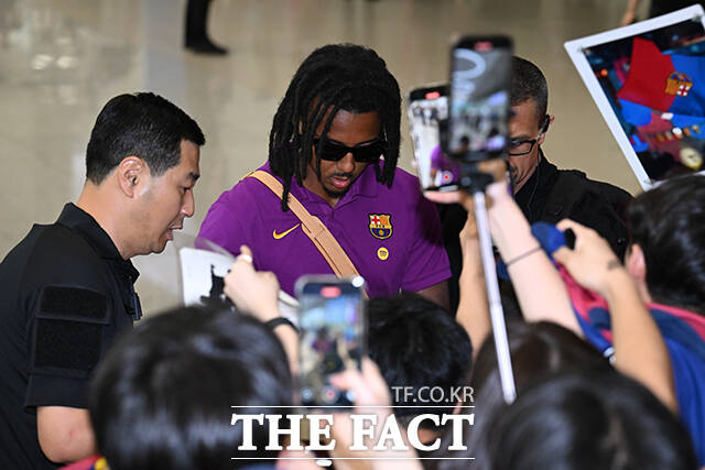 [더팩트ㅣ인천국제공항=장윤석 기자] FC 바르셀로나의 쥘 쿤데가 29일 오후 인천국제공항을통해 입국하며 팬들에게 사인하고 있다.