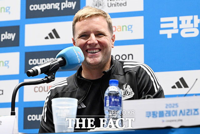 [더팩트ㅣ남용희 기자] 에디 하우 뉴캐슬 유나이티드 감독이 29일 오후 서울 여의도 IFC 더 포럼에서 열린 2025 쿠팡플레이 시리즈 뉴캐슬 기자회견에서 취재진의 질문에 답하고 있다.