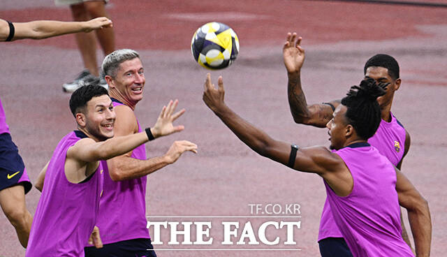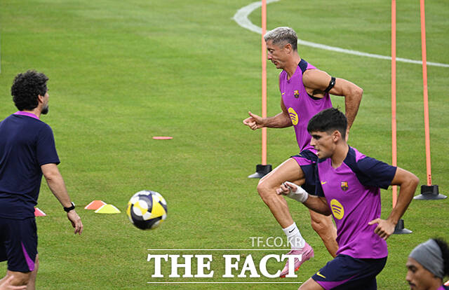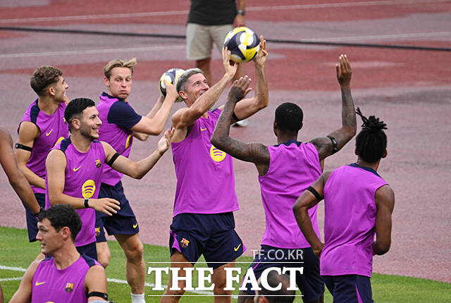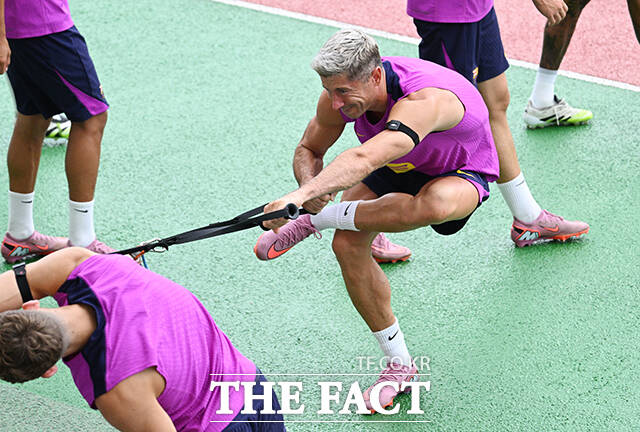 [더팩트|고양종합운동장=박헌우 기자] FC바르셀로나 로베르트 레반도프스키가 30일 오후 경기 고양시 고양종합운동장에서 훈련하고 있다.
