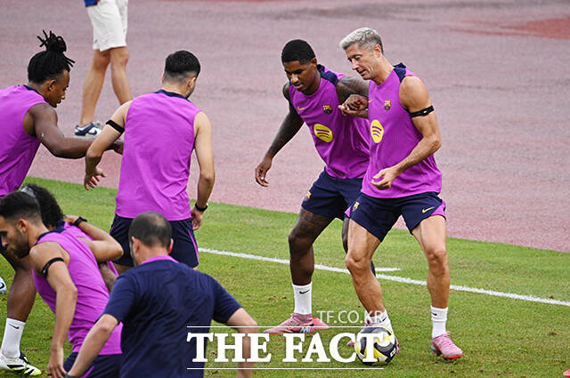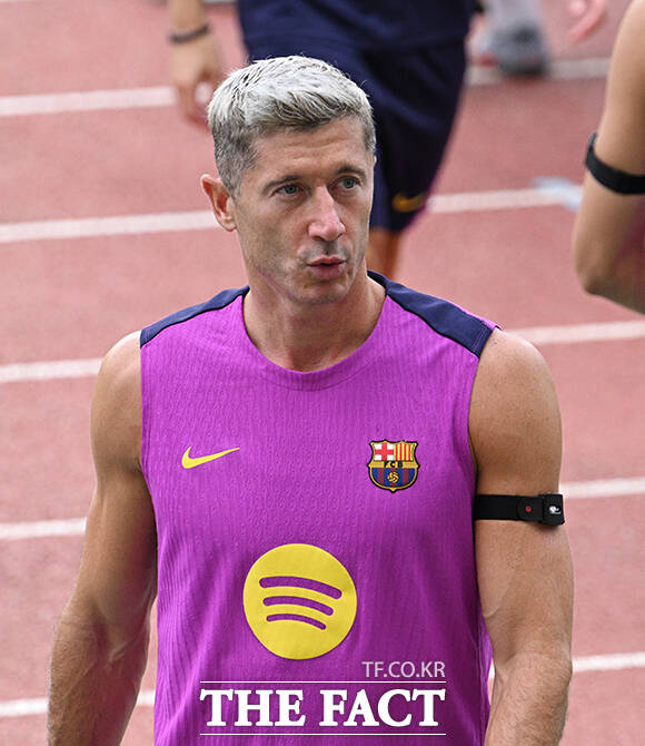 FC바르셀로나 로베르트 레반도프스키가 30일 오후 경기 고양시 고양종합운동장에서 훈련하고 있다. /고양종합운동장=박헌우 기자