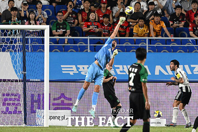 [더팩트ㅣ수원월드컵경기장=남용희 기자] 닉 포프가 30일 오후 경기도 수원시 팔달구 수원월드컵경기장에서 열린 팀 K리그와 뉴캐슬 유나이티드의 쿠팡플레이 시리즈 1경기에서 펀칭을 하고 있다.