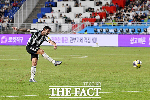 [더팩트ㅣ수원월드컵경기장=남용희 기자] 산드로 토날리가 30일 오후 경기도 수원시 팔달구 수원월드컵경기장에서 열린 팀 K리그와 뉴캐슬 유나이티드의 쿠팡플레이 시리즈 1경기에서 슈팅을 시도하고 있다.