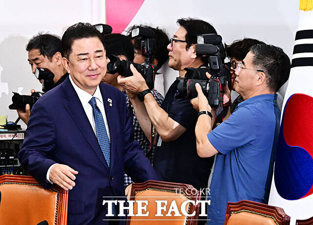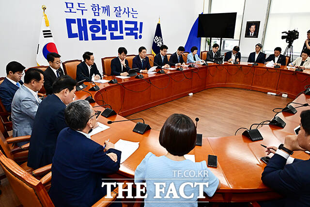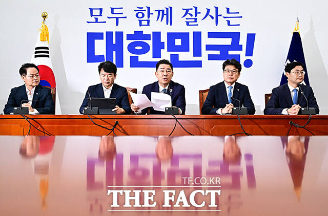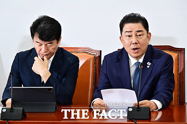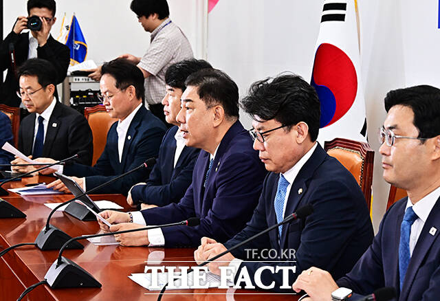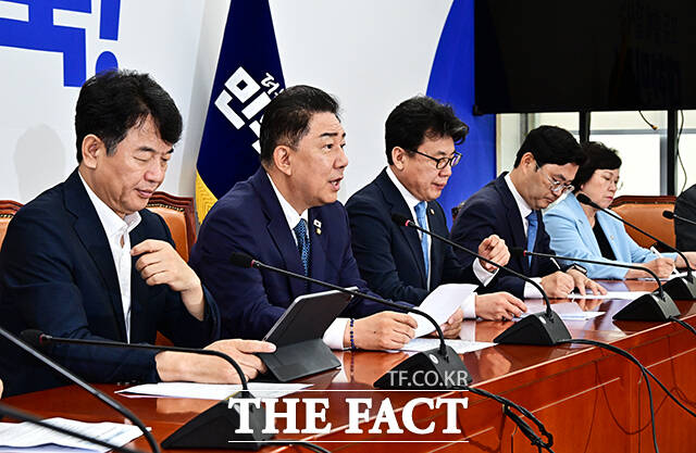 [더팩트ㅣ국회=배정한 기자] 김병기 더불어민주당 당대표 직무대행 겸 원내대표가 31일 오전 서울 여의도 국회에서 열린 정책조정회의에 참석해 모두발언을 하고 있다.