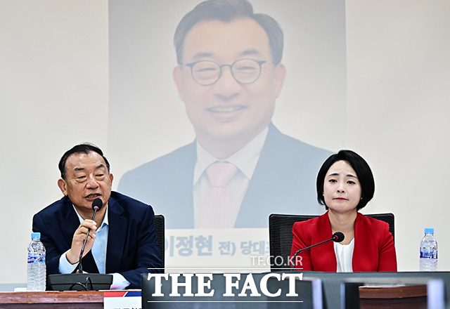 [더팩트ㅣ국회=배정한 기자] 이정현 전 새누리당 대표(왼쪽)가 31일 오후 서울 여의도 국회 의원회관 제2세미나실에서 열린 '청년당원과 함께 하는 손수조 출정식'에 참석해 축사를 하고 있다.hany@tf.co.kr사진영상기획부 photo@tf.co.kr