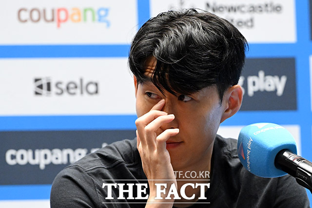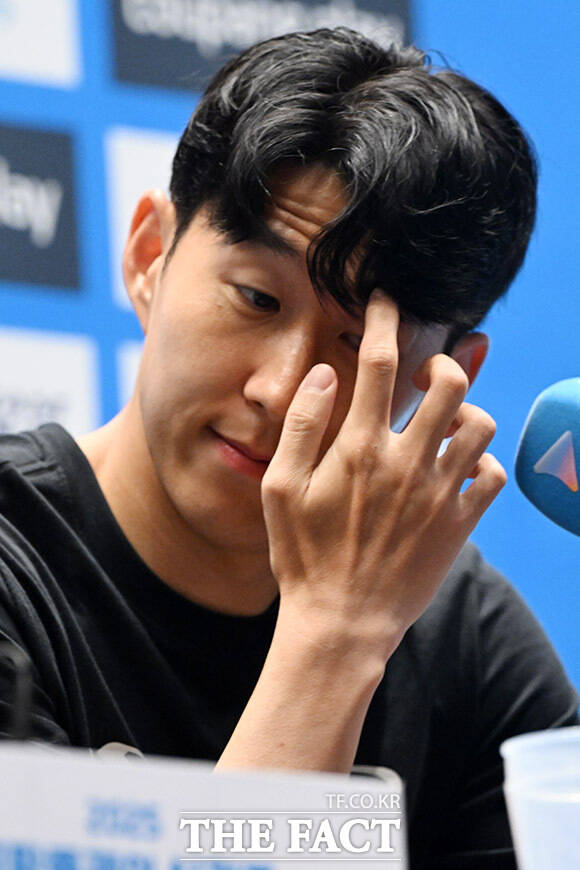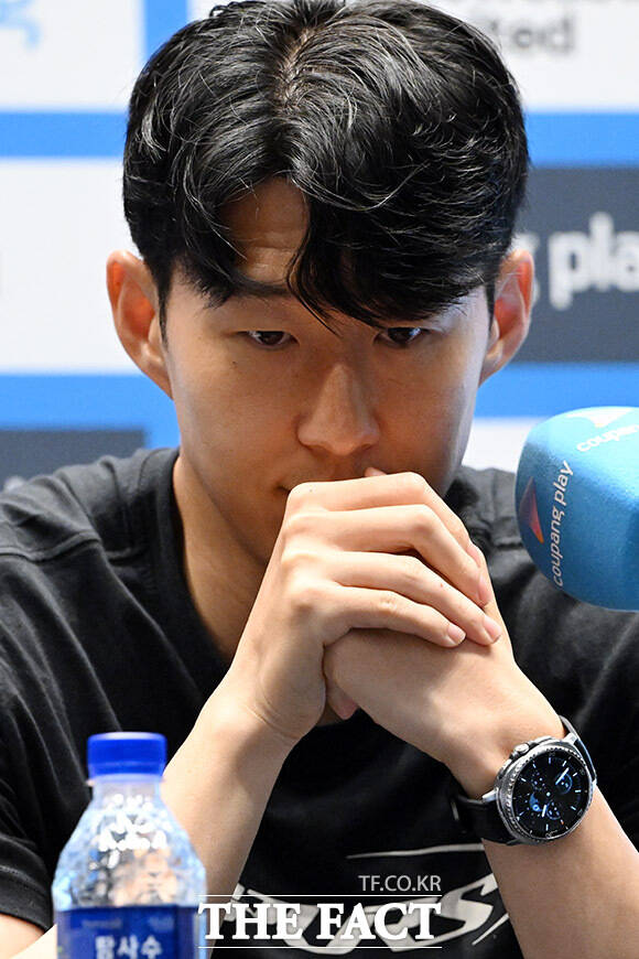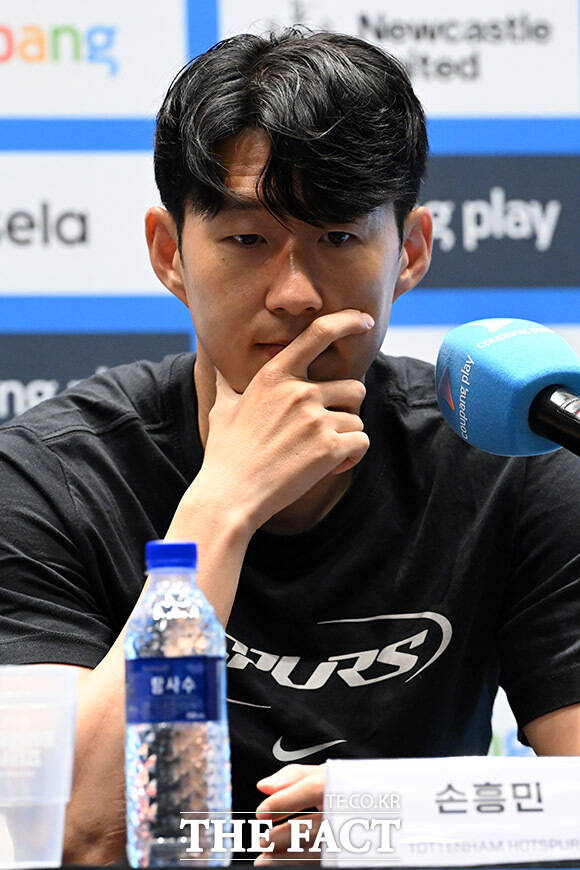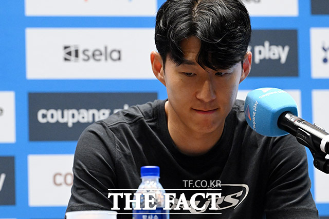 [더팩트ㅣ남용희 기자] 토트넘 훗스퍼의 손흥민이 2일 오전 서울 여의도 IFC 더 포럼에서 열린 2025 쿠팡플레이 시리즈 기자회견에서 이적에 관련된 발언을 마친 뒤 생각에 잠겨있다.