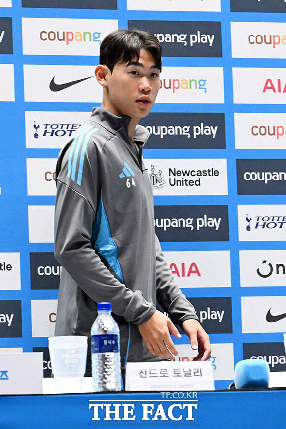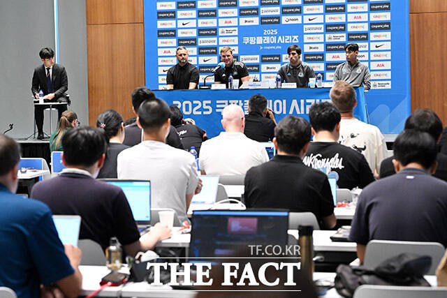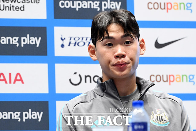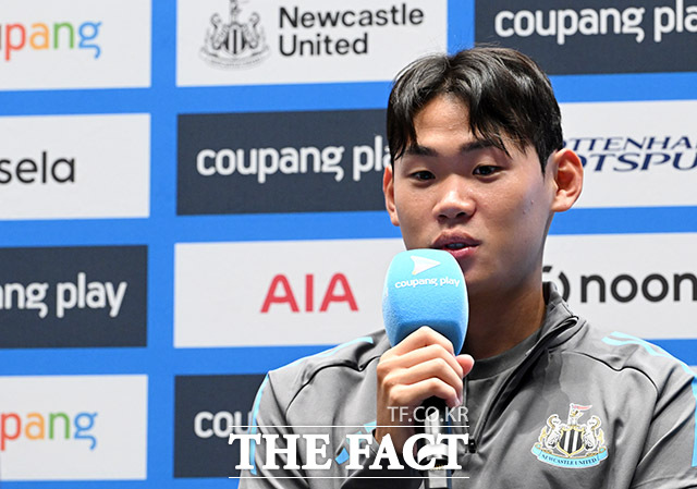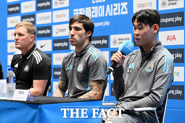 [더팩트ㅣ남용희 기자] 뉴캐슬 유나이티드 박승수가 2일 오후 서울 여의도 IFC 더 포럼에서 열린 2025 쿠팡플레이 시리즈 뉴캐슬 기자회견에서 취재진의 질문에 답하고 있다.