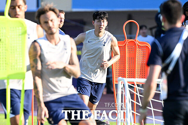 [더팩트ㅣ안양종합운동장=남용희 기자] 손흥민이 2일 오후 경기도 안양시 안양종합운동장에서 열린 2025 쿠팡플레이 시리즈 토트넘 오픈 트레이닝에서 훈련을 하고 있다.