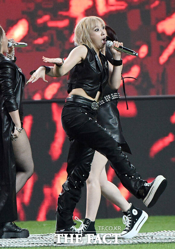 [더팩트ㅣ서울월드컵경기장=남용희 기자] 토트넘 훗스퍼와 뉴캐슬 유나이티드의 쿠팡플레이 시리즈 2경기가 3일 오후 서울 마포구 서울월드컵경기장에서 열린 가운데 그룹 2NE1 공민지가 축하 무대를 펼치고 있다.