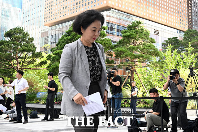 [더팩트ㅣ서예원 기자] 김영선 전 국민의힘 의원이 4일 오전 서울 종로구 KT 광화문 빌딩 웨스트에 마련된 김건희 여사 관련 의혹을 수사 중인 민중기 특별검사팀 사무실로 출석했다.