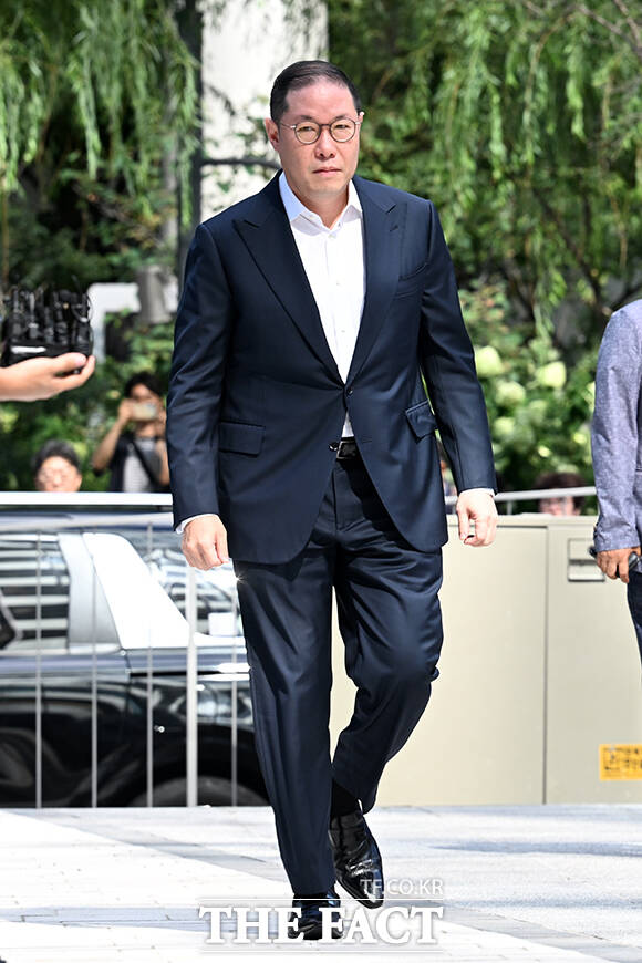 [더팩트ㅣ서예원 기자] 조현상 HS효성 부회장이 4일 오전 서울 종로구 KT 광화문 빌딩 웨스트에 마련된 김건희 여사 관련 의혹을 수사 중인 민중기 특별검사팀 사무실로 출석하고 있다.