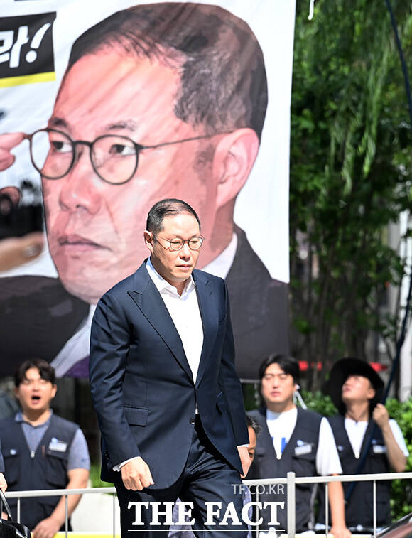 [더팩트ㅣ서예원 기자] 조현상 HS효성 부회장이 4일 오전 서울 종로구 KT 광화문 빌딩 웨스트에 마련된 김건희 여사 관련 의혹을 수사 중인 민중기 특별검사팀 사무실로 출석하고 있다.