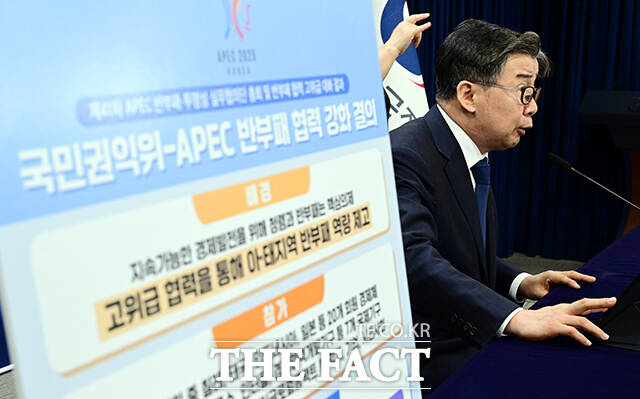 [더팩트ㅣ임영무 기자] 유철환 국민권익위원회 위원장이 4일 오전 서울 종로구 정부서울청사에서 국민권익위원회-APEC 반부패 협력 강화와 관련해 브리핑 하고 있다.