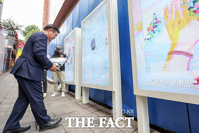 [더팩트ㅣ장윤석 기자] 윤호중 행정안전부 장관이 4일 오후 서울 용산구 이태원 참사 현장인 '10.29 기억과 안전의 길'을 찾아 헌화하고 있다.