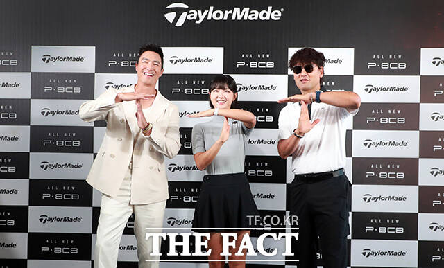 [더팩트ㅣ박헌우 기자] 골프 의류 브랜드 테일러메이드 브랜드 앰배서더인 배우 다니엘 헤니와 크리에이터 골프라노, 전 야구선수 박찬호(왼쪽부터)가 4일 서울 광진구 광장동 워커힐에서 열린 '테일러메이드 P·8CB 아이언 출시 기념 쇼케이스'에 참석해 기념촬영을 하고 있다.