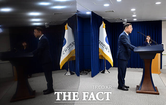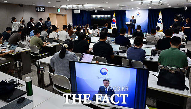 [더팩트ㅣ임영무 기자] 송상훈 과학기술정보통신부 정보통신정책실장이 4일 오후 서울 종로구 정부서울청사에서 독자 AI 파운데이션 모델 프로젝트 정예팀 선정 결과를 브리핑하고 있다.