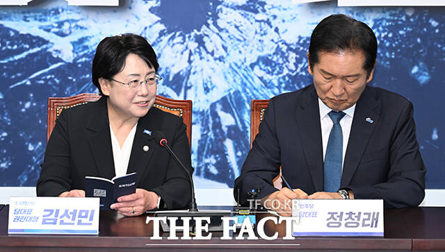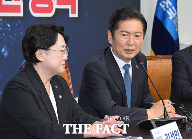 [더팩트ㅣ국회=박헌우 기자] 정청래 더불어민주당 신임 대표가 5일 오전 서울 여의도 국회에서 김선민 조국혁신당 대표 권한대행을 예방해 인사말을 하고 있다.