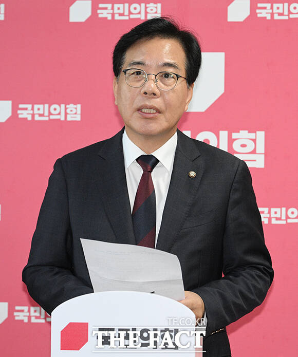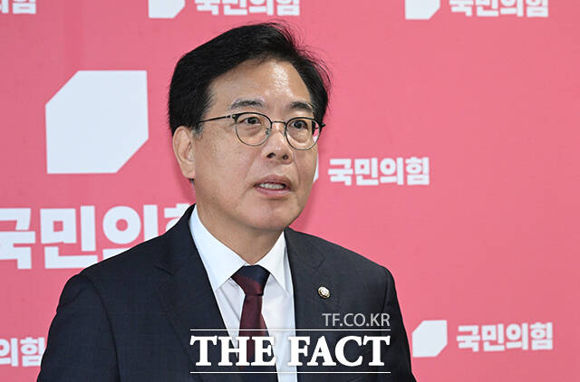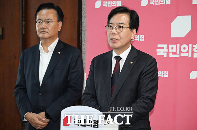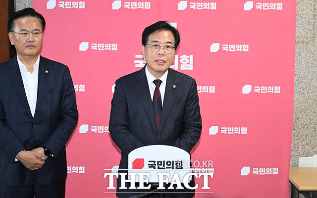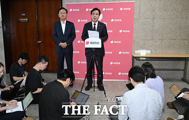 [더팩트ㅣ국회=박헌우 기자] 송언석 국민의힘 비상대책위원장 겸 원내대표가 5일 오후 서울 여의도 국회에서 현안 관련 백브리핑을 하고 있다.