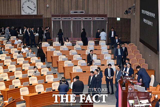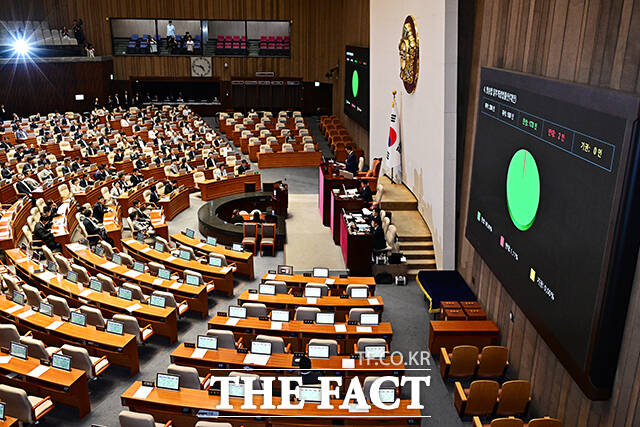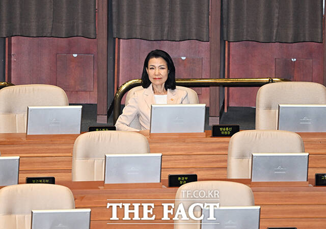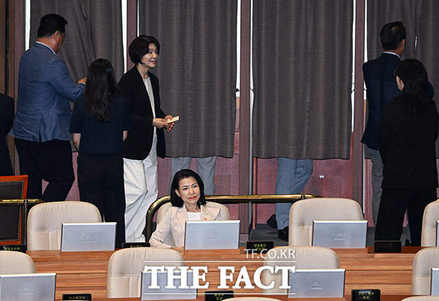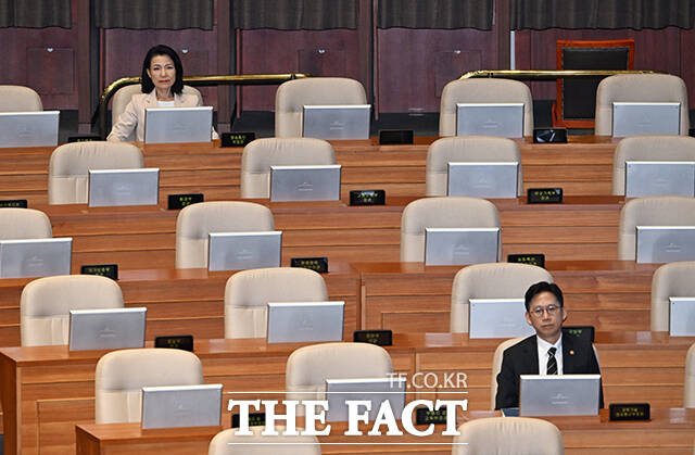 [더팩트ㅣ국회=배정한 기자] 이진숙 방송통신위원장이 5일 오후 서울 여의도 국회에서 열린 본회의에 참석해 방송법 일부개정법률안(대안)에 대한 표결 결과를 기다리고 있다.