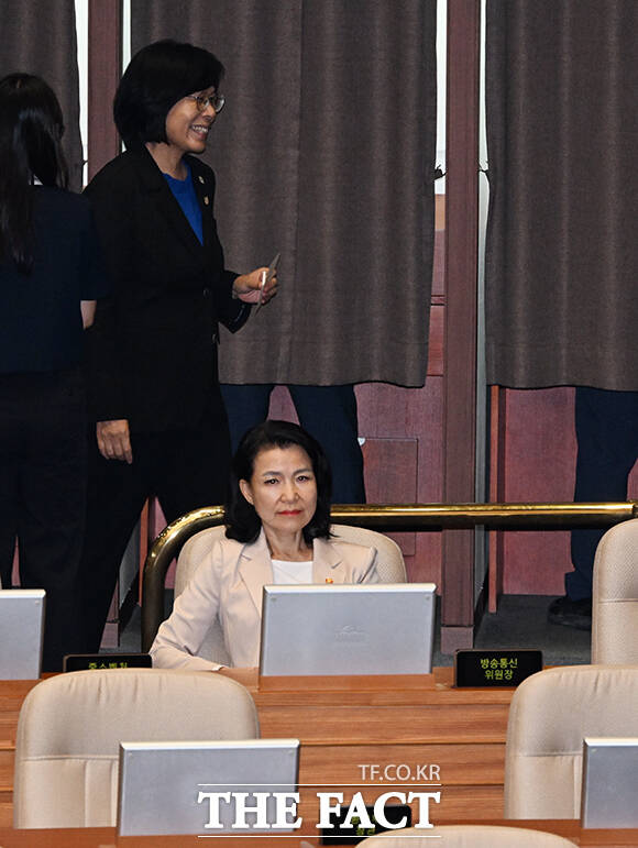 방송법 개정안 국회 본회의 통과...표정 변화 없는 이진숙 [TF사진관]